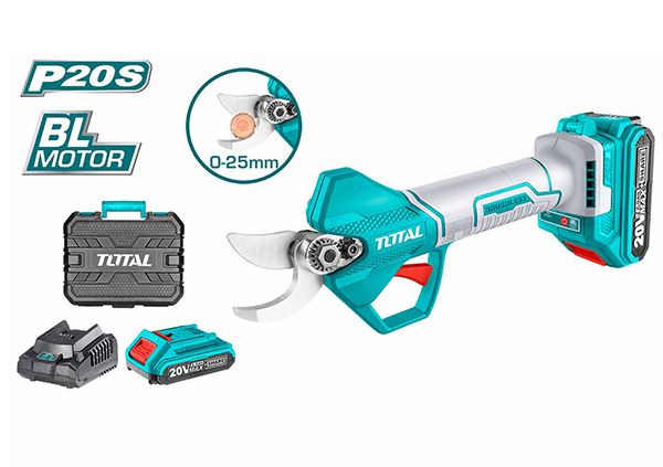 Аккумуляторный электрический секатор TOTAL TSSLI202581 Модель №. TSSLI202581 Напряжение 20В Диаметр резки 25 мм Автономность с батареей 2 Ач - 3000 сокращений с батареей 4 Ач - 5000 сокращений Время зарядки 2Ач - 1 час Время зарядки 4Ач - 2 часа Батарея в комплект входит. Совместима с батареями 2,0 Ач и 4,0 Ач Зарядное устройство в комплект входит Аккумуляторные секаторы используются для ухода за садовыми деревьями и кустарниками. Способен обрезать ветки до 2.5-х сантиметров в диаметре. Инструмент питается от аккумулятора на 20 В, что позволяет выполнять плавный рез без особых усилий. Секатор оснащен высокопрочными лезвиями, они имеют антикоррозионную обработку, что обеспечивает длительный срок службы.