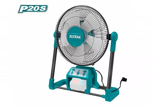 Литий-ионный вентилятор 20V TOTAL TFALI2001 Тип вентилятор. Напряжение переменного тока: 230 В / 50 Гц. Напряжение постоянного тока: 20 В. Регулировка наклона: 0 - 360 градусов. Размер: 330 мм (13 дюймов). Батарея: не входит в комплект. Зарядное устройство: не входит в комплект. Вес: 3,8 кг. 3 скорости вращения. Совместимость с аккумулятороми: 2,0 Ач и 4,0 Ач .