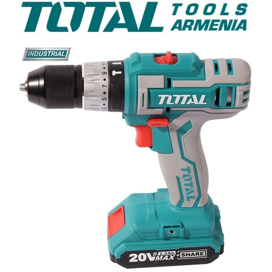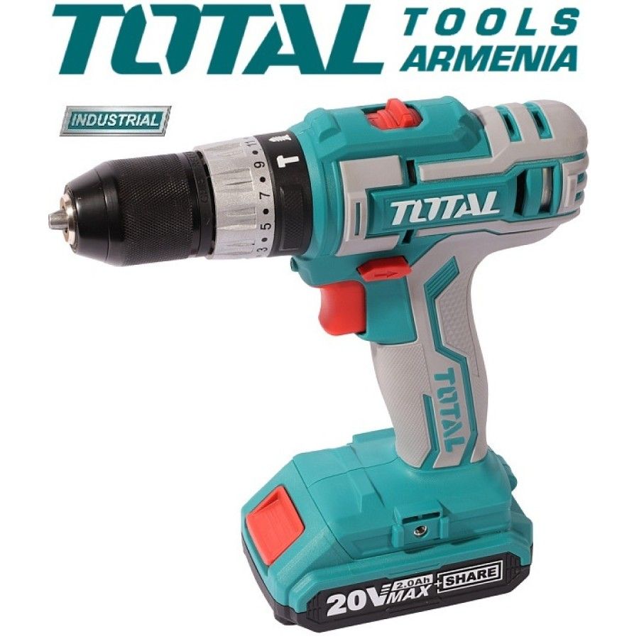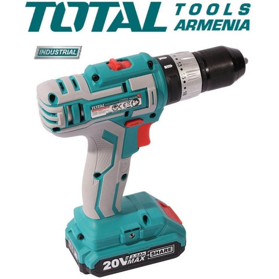 АккумуляторнаяУдарная Дрель - отвертка (шуруповерт)TotalTIDLI20031 20 В , 55Нм + 1 батарея Ударная дрельTIDLI2003 имеет 3 функции: дрель / резьбовой молоток / отвертка, продукт поставляется в очень солидном матерчатом мешке, включая: 1 корпус, 1 зарядное основание и 2 батареи . Аккумуляторный молоток TotalTIDLI20031 является частью нового продукта, который Total выпускает в 2020 году, высокого качества, но с низкой ценой. Запасные части: Винт M4x8 С Шайбой TIDLI20031-SP-5 Мотор TIDLI20031-SP-8 Коробка Передач TIDLI20031-SP-2 Напряжение: 20 В Скорость холостого хода: 0-400 / 0-1900 / мин Максимальная скорость удара: 28500 / мин Максимальный крутящий момент: 55 Нм Емкость патрона: 2,0-13 мм Настройки крутящего момента: 23 + 1 + 1 Бесключевой патрон с автоблокировкой Механическая двухступенчатая передача Функция блокировки шпинделя С аккумулятором 2шт. С быстрым зарядным устройством 1 шт., 1 час С аксессуарами 4 шт. И винтом Гарантия на обслуживание 1 год Магнитный держатель + биты + Аксессуары 50 шт Чемодан/Кейс Дрель-шуруповерт ударная снабжена быстрозажимым металлическим патроном, что обеспечивает быструю и удобную замену оснастки. Для ослабления и выкручивания крепежа предусмотрена функция реверса. Встроенная подсветка позволяет работать в темное время суток или при плохом освещении. Модель функционирует от литий-ионного аккумулятора, который отличается легкостью и мощностью, отсутствием саморазряда и эффекта памяти Этот продукт питается от литиевой батареи 20 В, новая технология батареи должна помочь сделатьпродукт у более прочной и продлить срок ее эксплуатации, корпус изготовлен из слоя АБС, выдерживает силу и хорошая теплостойкость. Устройство имеет компактную конструкцию, которая удобна для хранения и переноски при необходимости.