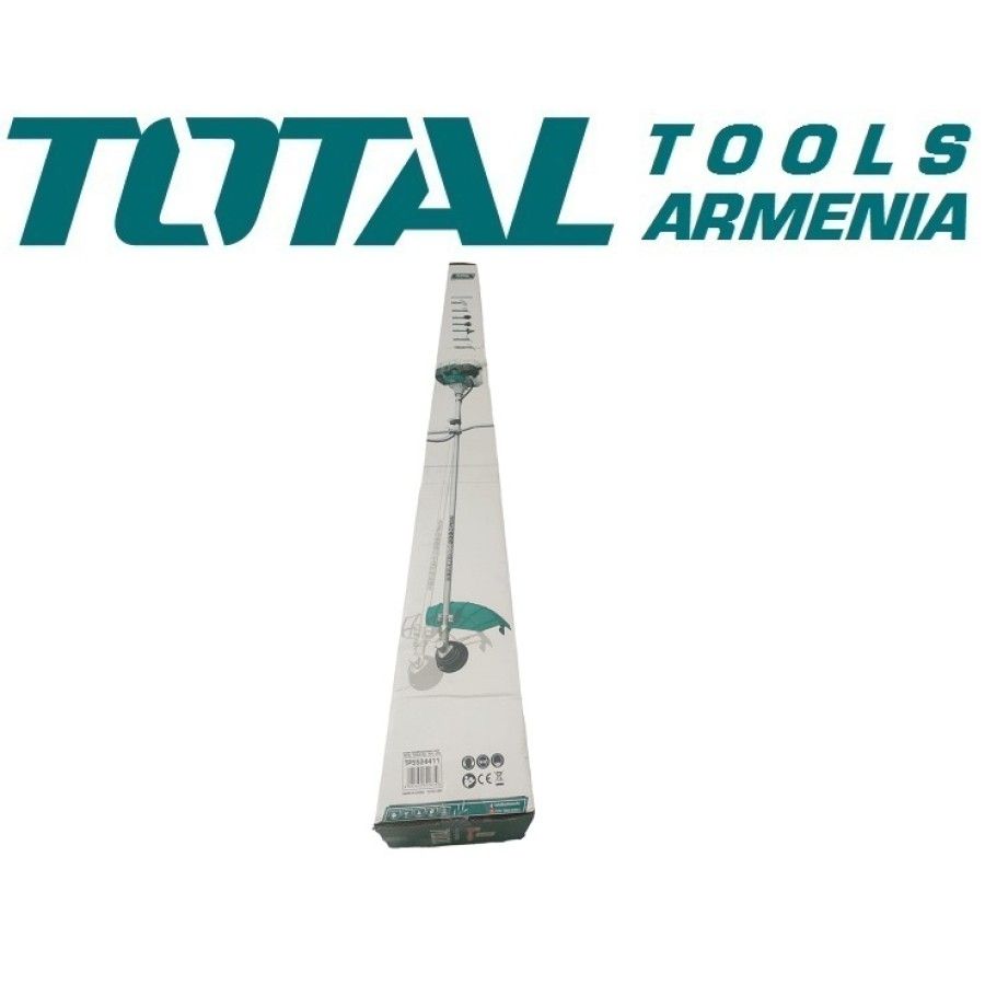 Бензиновый триммер 1.4 кВт TOTAL TP5524411 Бензиновая мотокоса TOTALявляется надежным, хорошо сбалансированным и удобным инструментом для сада. Благодаря своей элегантной эргономичной форме ее можно использовать на самых сложных и труднодоступных участках, там, где применение газонокосилки затруднено. Современный, хорошо продуманный дизайн позволяет надежно удерживать триммер в руках и легко, эффективно, без лишних усилий выполнять работу. Мотокоса TOTAL оснащена бензиновым 2-х тактным двигателем объемом 52 куб/см, мощностью 1400Вт с максимальной скоростью 9000 об/мин. Объем топливного бака мотокосы 1200 мл. Ширина среза охватывает 420мм. Для резки используется леска 2.4мм x 4м. Инструмент является незаменимым помощником в ежедневном уходе за газоном и садом. Для удобства использования конструкцией предусмотрена вторая рукоятка. Мощность:1.4 Кв. Мощность: 2.2 л.с. Оборотов: 9000 об/мин. Рабочий объем: 52см³ . Емкость: 1200 мл․ Ширина резки: 420 мм. Ширина режущей кромки: 255 мм. Вес: 11 кг. Гарантия: 1 Года. 2 - тактный двигатель. С 2 функциями: триммер и резак. Двигатель с воздушным охлаждением, одноцилиндровый. С леской TGTLS2545 . Лезвие для кустореза TGTBCB95 .