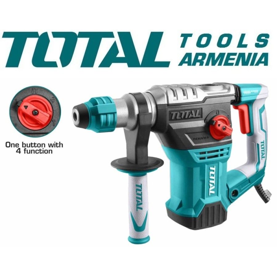 Электрическая Перфоратор Total TH110266 / SDS Plus / 1050В / 4.5 Дж - Как и другие машины для сверления бетона, всегоTH110266 также способен сверлить / делать отверстия в обычных материалах, таких как дерево, бетон и железо, мощностью 1050 Вт. Работайте ударно – бетон не устоит! Нужно установить в доме водяные стояки, пробурить стену для протяжки интернет-кабеля, закрепить полки и плинтус? Придется сверлить бетон! Выручит перфоратор TOTAL SDS+ TH110266 с вертикальным расположением двигателя. За счет такой конструкции удар вместе с весом инструмента лучше передается на оснастку, в отличие от классических моделей Перфоратор имеет три режима. Вы можете скалывать материалы и бурить стены из кирпича или бетона. Если установить сверлильный патрон, удастся работать с деревом и металлическим профилем. Возьмите в руки перфоратор TOTAL – почувствуйте всю силу и мощь! Запасные части: Крышка Двигателя TH110266-SP-89 Молоток TH110266-SP-14 Подшипник 61906 TH110266-SP-16 Форма TH110266-SP-83 Поршень TH110266-SP-29 Кольцо X-Ring TH110266-SP-12 Скорость холостого хода: 0 - 1100 об / мин Уровень воздействия: 0 - 3800 ударов в минуту. Максимальная мощность сверления бетона: диаметр 26 мм, Прилагаемые аксессуары: в комплекте 3 сверла,зубило плоское, зубило пикообразное Система патронов SDS Plus Макс сверло по бетону 26 мм МАКС Дрель Металл 13 мм МАКС Дрель Древесине 40 мм