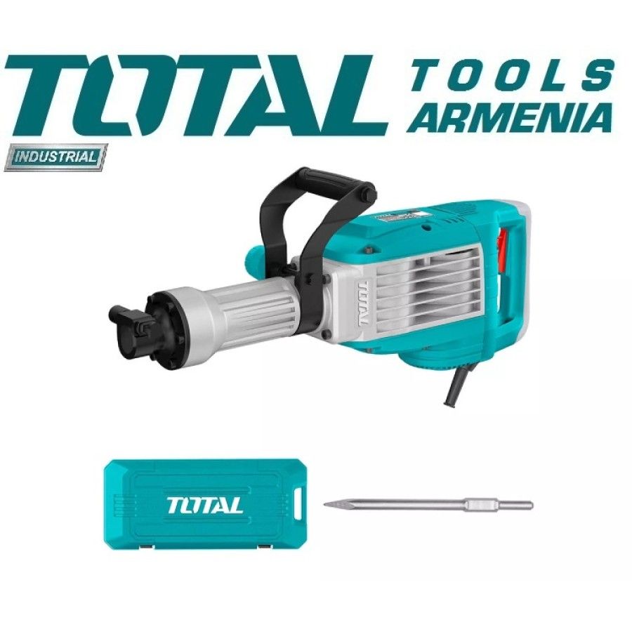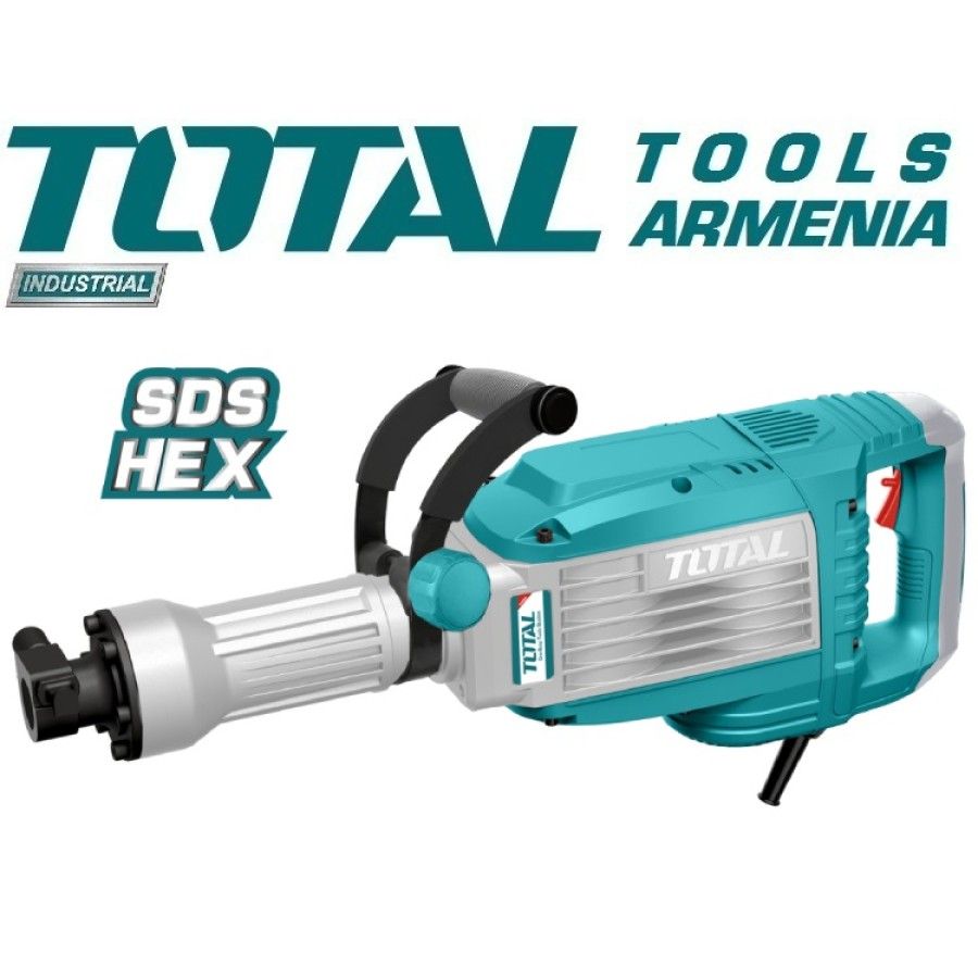 Электрический Отбойный Молоток / SDS HEX / 1700Вт / 50Дж / ПРОМЫШЛЕННАЯ / INDUSTRIAL TOTAL TH217068 - Изготовлен из стандартных материалов хорошего качества инструмент предназначена для того, чтобы ее было удобно держать. - Тип патрона Шестигранная патронная система со встроенной защитой от пылинизкая вибрация во время работы - Помогает работать без усталости, обладает высокой степенью извлечения, долговечна, пригодна для сноса. Мощность 1700 Вт Уровень воздействия: 1900 ударов в минуту. Прилагаемые аксессуары: в комплекте 1зубило пикообразное, 1 пара угольных щеток Ударная энергия 50 Дж Разрушитель 14 кг Система патронов SDS HEX -Применяется только для пик и долот.SDS-hex представляет шестигранный зажим и используется только на отбойных молотках с очень высокой энергией удара. Антивибрационная система Металлическая крышка для жесткой работыУпаковано в чемодан.