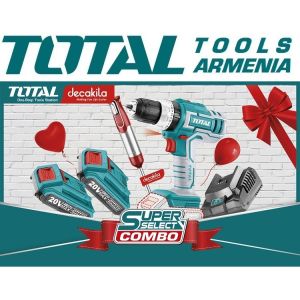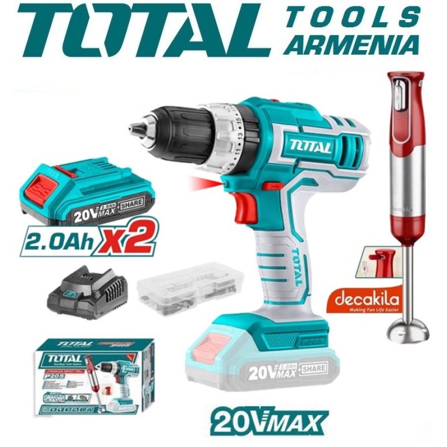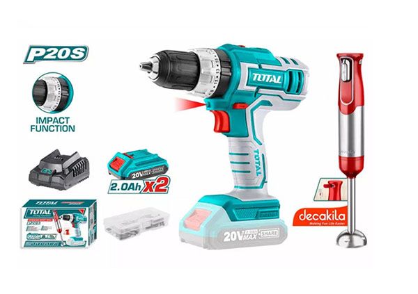 Литий-ионный комбинированный комплект из 2 шт. TOTAL TOSLI22112 Литий-ионная ударная дрель ( TIDLI20031 ) Напряжение: 20 В Напряжение заряда: 220-240 В~50/60 Гц Скорость без нагрузки: 0-450/0-1900 об/мин Максимальная скорость удара: 22500/мин. Максимальный крутящий момент: 55 Нм Емкость патрона: 2,0-13 мм Настройки крутящего момента: 23+1+1 Механическая двухскоростная передача С аксессуарами 50 шт. С аккумуляторной батареей 2 шт. 2,0 Ач С зарядным устройством 1 шт. Аккумуляторный ручной блендер (KMJB023R) Мощность: 100 Вт Напряжение: 11,1 В постоянного тока Объем батареи: 2000 мАч 2 скорости и бесступенчатая регулировка скорости Стержень из сплава SUS Упаковано в цветную коробку