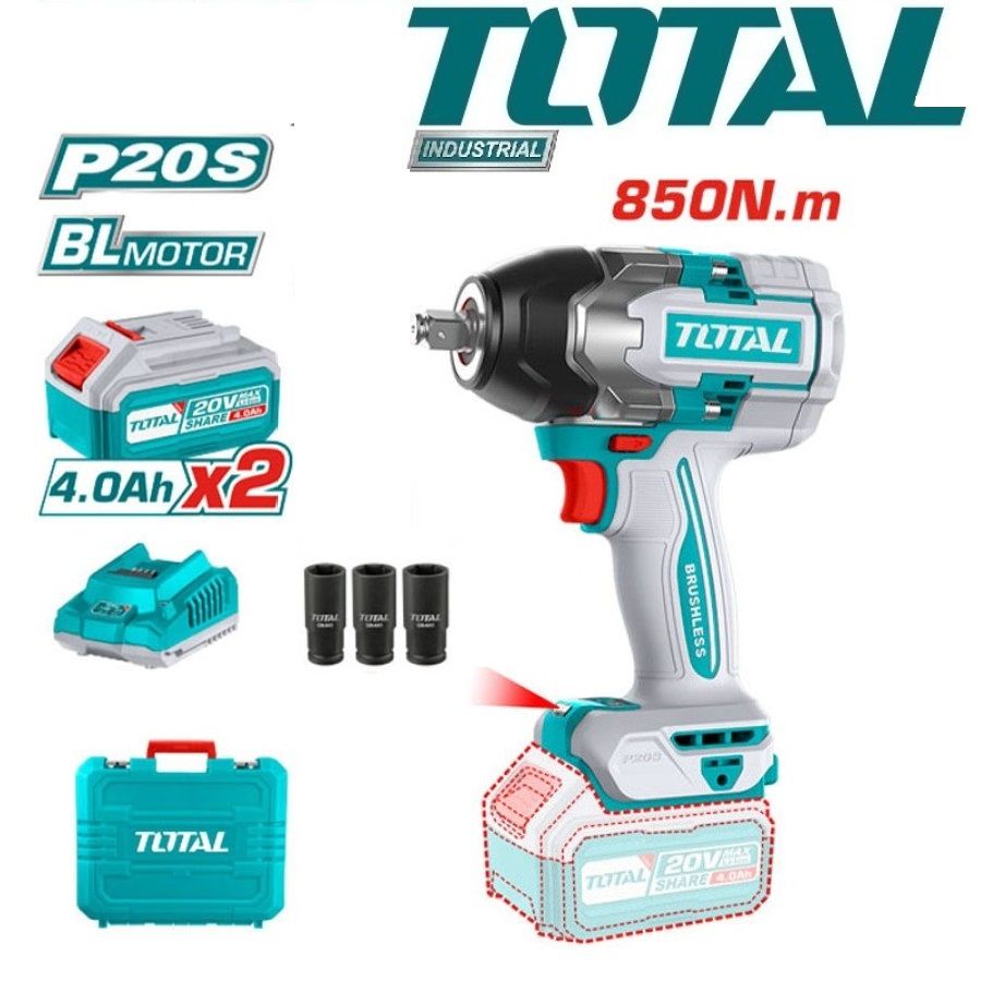 Литий-ионный ударный гайковерт 20 В / 850 Нм TOTAL TIWLI2085 Сетевой гайковерт TOTAL TIWLI2085 предназначен для работы с резьбовым крепежом. За продолжительный срок службы отвечает металлический корпус редуктора.Квадратный привод с фрикционным кольцом обеспечивает надежную фиксацию оснастки.Благодаря крутящему моменту 850 Нм достигается высокая функциональность инструмента. В комплект входят: Головка гайковерта 22 мм, 24 мм, 27 мм, 3шт. 2 аккумулятора 20 В 4.0 Ач, 1 зарядное устройство, 1 кейс для переноски. Крутящий момент: 850 Нм. Крутящий момент при срыве гайки: 1000 Нм. Напряжение: 20 В. Скорость вращения шпинделя: 0-1600/0-2100/0-2400 об/мин. Частота ударов: 0-1500/0-1800/0-2200 ударов/мин. Интегрированное рабочее освещение. Размер патрона: 1/2 дюйма. Реверс: есть. Ударный механизм: есть.