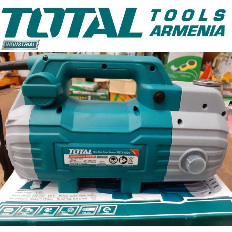Мойка высокого давления TOTALTGT11236 1500Вт Мойка – аппарат высокого давления для удаления загрязнений, оснащенный механизмом всасывания моющего средства, двигателем с воздушным охлаждением. Устройство пригодно как для домашнего использования, так и для небольших автомоек. Мойка высокого давления инструмент, предназначенный для очистки поверхностей мощной струёй воды от различного рода загрязнений, продуктов коррозии и старых покрытий: краски, лаков, плесени и т. п. Существуют как бытовые, так и профессиональные устройства. Мощность мойки определяется развиваемым её насосом давлением. На рынке доступны устройства, создающие давление до 10 МПа. Существуют также промышленные мойки высокого давления, представляющие собой стационарные установки. Мойка высокого давления TOTAL подойдет для мытья автомобиля, мотоцикла. Имеет систему автоматической остановки. Благодаря синхронному двигателю мощностью 1500 Вт достигается хорошая производительность. Для перемещения мойки предусмотрена удобная ручка. Мощность: 1500 Вт. Напряжение: 220-240 В / 50-60Гц. Давление: 100 бар. Расход воды: 360 л / час. Использование моющего средства: емкость для шампуня на пистолете, количество емкостей: 1 Вес: 13 кг. Гарантия: 1 Года.