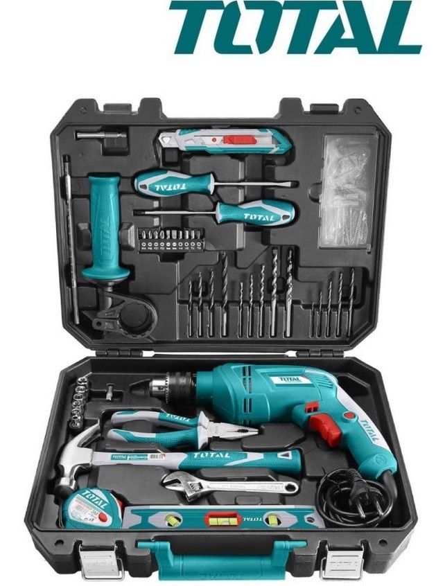 НАБОР БЫТОВЫХ ИНСТРУМЕНТОВ (550 Вт) 111 шт. TOTAL THKTHP1112 Ударная дрель 550 Вт (220-240 В ~ 50/60 Гц, патрон 13 мм) - 1 шт. 1 шт 8 унций. Молоток с когтями Отвертка SL5,5 x 100 - 1 шт. Отвертка PH1 x 100 - 1 шт. Клещи комбинированные 7 ″ 1 шт. Разводной ключ 6 ″ 1 шт. 1 шт. Стальная измерительная лента, 3 м 1 шт. Нож с отламывающимся лезвием 5 шт. Спиральных сверл (2, 3, 4, 5, 6 мм) 5 сверл по камню (4, 5, 6, 8, 10 мм) 4 шт. Сверла по дереву (4, 5, 6, 8 мм) 1 шт. Тестовый карандаш 1 шт. Изоляционная лента из ПВХ 6 бит отверток (PH1, PH2, SL4, SL6, T20, T25) 1 шт. Магнитный держатель для бит 40 шт. Винты (20 шт. X ST3,5, 10 шт. X ST4, 10 шт. X ST5) 40 пластиковых заглушек (20 x 5 мм, 10 x 6 мм, 10 x 8 мм) Набор Total Tool Box 111 Pieces состоит из ударной дрели мощностью 550 Вт с 14 сверлами различных размеров и типов, в него входят несколько отверток разных размеров, рулетка, молоток и множество других удобных инструментов. Этот набор инструментов идеально подходит для использования в профессиональной среде или дома. В этот набор инструментов также входит удобный ящик с адаптером для розетки. В этом наборе есть мощная ударная дрель, молоток, различные типы отверток и различные инструменты, которые могут облегчить ваш рабочий день. Этот набор инструментов - все, что вам понадобится, когда вы работаете дома над различными задачами.