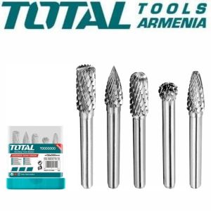 Набор головок длягравераTOTAL TAKC0651 Диаметр хвостовика: 6 мм. Диаметр инструментальной головки: 8 мм. Твердосплавная инструментальная головка YG7, инструментальный стержень 40Cr. Упакован в пластиковую коробку.