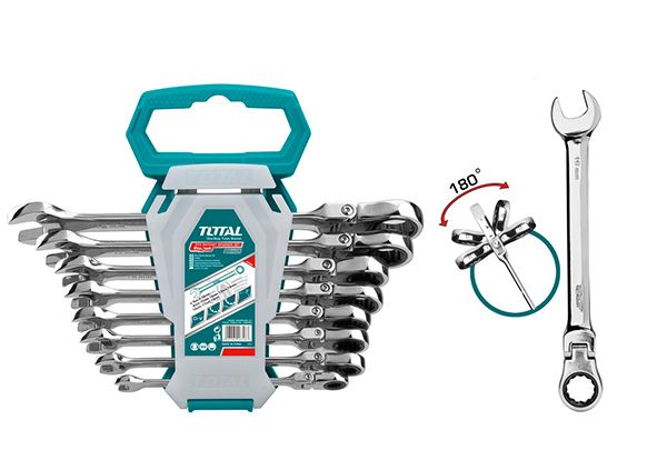 Набор ключей со складывающейся головкой TOTAL THT102RK586 Размер мин. 8мм Размер макс. 19мм Тип складывающей Материал Cr-V Количество в наборе 8шт. Размеры ключей 8мм, 10мм, 12мм, 13мм, 14мм, 15мм, 17мм, 19мм, Набор складывающей гаечных ключей 8 шт. TOTAL THT102RK586 применяется для захвата и откручивания резьбовых соединений, имеющих внешнюю головку. Ключи отличаются прочностью, выдерживают существенные нагрузки, не боятся коррозии. Набор поставляется с пластиковым держателем, обеспечивающим удобство хранения и транспортировки инструментов.