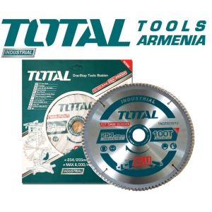 Пильный диск по алюминию 254х30мм TOTAL TAC2337210 Отверстие под диск - 30 мм. Диаметр - 254мм. Кольцо редукционное - 16 - 25.4мм. Тип - для резки алюминия. Зубы - 100шт. Для TS42182551 илиTS42182552 . Упаковано - цветной коробкой. Пильный диск TOTAL TAC2337210 предназначен для продольной и поперечной резки алюминию. Зубья усилены твердосплавными пластинами для увеличения производительности и срока службы лезвия. Они заточены с трех сторон с чередующейся фаской на режущих кромках. Эти зубы значительно гарантируют чистый срез.