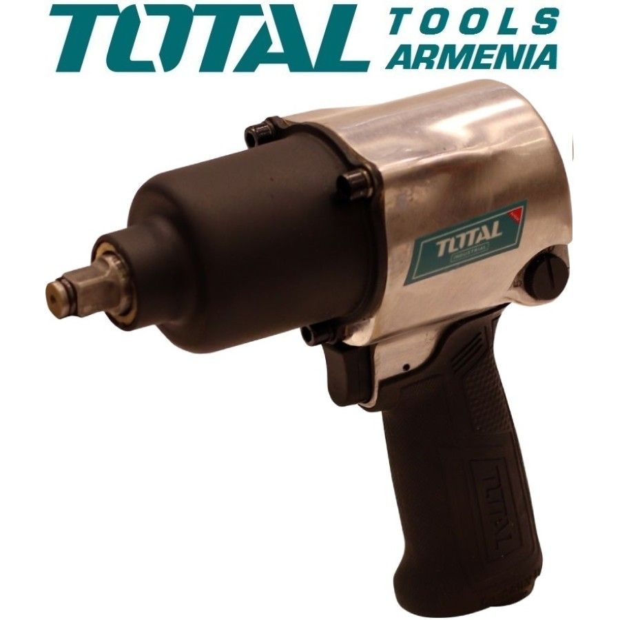 Пневматический ударный гайковерт 610 Нм/6.2 атм-1/2 дюйма TOTAL TAT40122 Пневматический ударный гайковерт TOTAL TAT40122 широко используется в автосервисах, производственных цехах и ремонтных мастерских. Ударный механизм позволяет работать с прикипевшим и приржавевшим крепежом. Прочный металлический корпус инструмента устойчив к механическим повреждениям.Принцип работы на сжатом воздухе обеспечивает низкую пожаро- и взрывоопасность рабочего процесса. В комплект входят: Головка гайковерта 3шт. Головка гайковерта длинный 12,5 см 1шт. Запасные части։ Посадочное Место Клапана TAT40122-SP-10 Втулка TAT40122-SP-8 Ротор TAT40122-SP-22 Триггер TAT40122-SP-14 Max крутящий момент: 610 Нм. Давление:6.2атм. Частота вращения шпинделя:7000 об/мин. Расход воздуха:142.5л/мин. Размер патрона: 1/2 дюйма Наличие реверса: естьНаличие удара: да Вес։ 3.29 кг. Гарантия։ 1 год