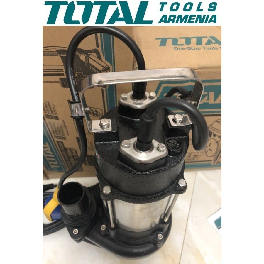 Погружной насос для сточных вод 750Вт TOTAL TWP775016 Напряжение - 220-240В 50Гц. Мощность - 750 Вт (1 л.с.). Максимум. высота - 13М. Максимум. расход - 350л / мин. Основание из нержавеющей стали. Винты из нержавеющей стали. Вал из нержавеющей стали. Диаметр трубы - 2 дюйм. Длина кабеля - 9м. Тепловая защита. Упаковано в картонную коробку. Погружной насос предназначен для работы с условно грязной водой. Возможность перекачивания жидкости со скоростью 21 м3 / ч. Поплавковый выключатель исключает работу всухую и предотвращает повреждение насоса. Для удобства переноски предусмотрена ручка.