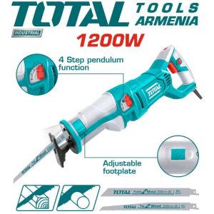 Сабельная пила TOTAL TS1001201 1200 Вт Сабельная пила TOTAL TS1001201 предназначена для распиловки заготовок. Данная модель изготовлена из качественных материалов, что гарантирует долгий срок службы. Благодаря регулировке скорости инструмент можно настроить под конкретную задачу, что делает его универсальным. Специальные захваты на рукояти и корпусе обеспечивают надежное удержание инструмента и точность, что повышает удобство работы. Запасные части: Регулятор Скорости TS1001201-SP-S.C Мощность: 1200 Вт ․ Напряжение: 220 В 50 Гц Обороты: 1000 - 2800 об/мин. Пиление по дереву: 210 мм. Пиление по стали: 20 мм. Ширина пропила в алюминии: 10 мм. В комплекте: 1 пильный диск по металлу, 1 пильный диск по дереву, 1 комплект дополнительных угольных щеток. 4-ступенчатая маятниковая функция. Гарантия: 1 год.