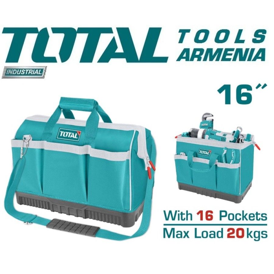 Сумка для инструмента 16 " TOTAL THT16162 Тип сумки Материал ткань оксфорд, полиэтилен (PE), резина Размер 16 " Цвет зеленый Жесткая рама для легкого открывания и доступа Усиленная пластиковая основа для долговечности Внутренние карманы для дополнительной вместимости Максимальная нагрузка 20 кг Количество секций 16 шт. Сумка TOTAL THT16162 предназначена для хранения и транспортировки инструментов. Обеспечивает удобное использование всей необходимой насадки в нужное время. Незаменим, когда инструмент всегда должен быть под рукой.