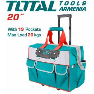 Сумка для инструментов на колесах 20" TOTAL THRRTB2012 Тип: сумка. Материал: полиэстер 600D–1680D. Размер: 20 дюймов. Цвет: зеленый. Жесткая рама для легкого открытия и доступа. С колесами и телескопической ручкой. Максимальная нагрузка: 20 кг. Количество секций: 19. Размеры: 45см х 28см х 36см. Сумка TOTAL THRRTB2012 предназначена для хранения и транспортировки инструментов. Обеспечивает удобное использование всего необходимого навесного оборудования в нужный момент. Незаменим, когда инструмент должен быть всегда под рукой.