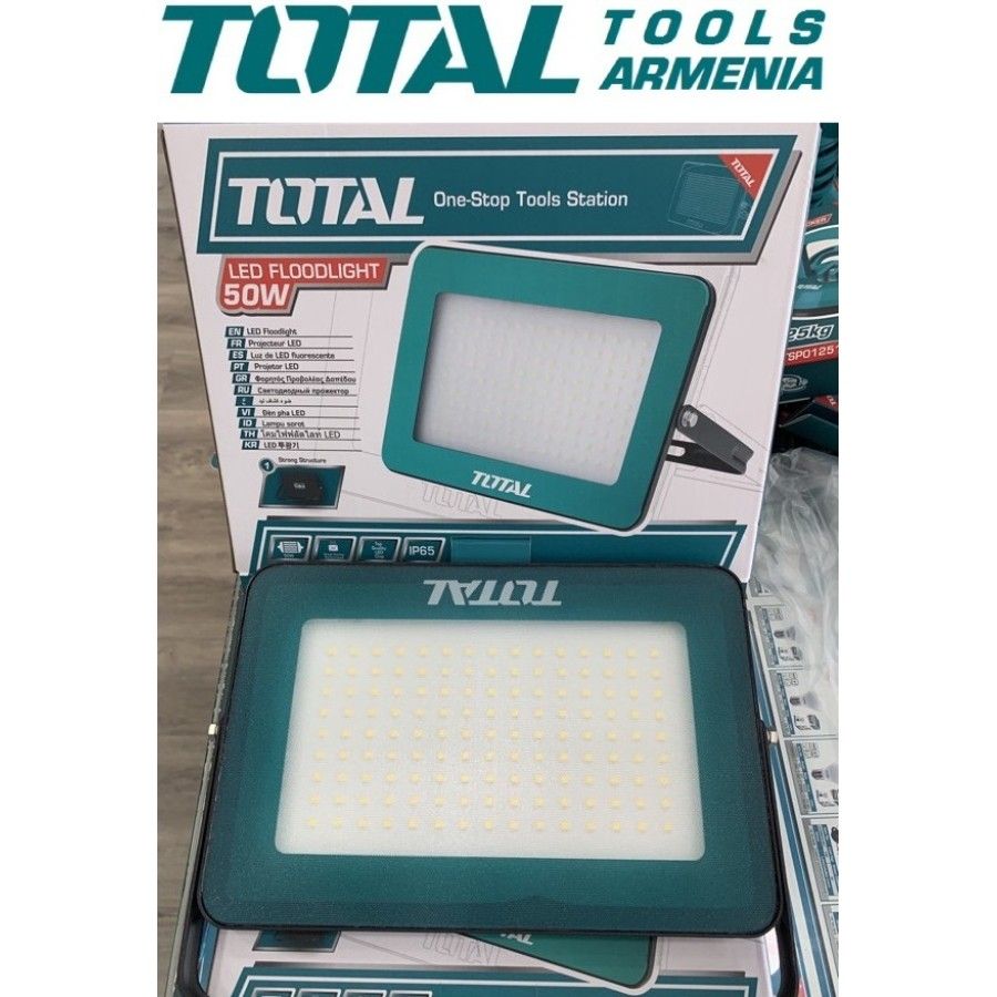 Светодиодный прожектор 50 Вт TOTAL TLFL3501 Напряжение: 220 - 240 В - 50/60 Гц . Мощность: 50 Вт . Производительность люмена: 4250 люмен . Размер: 230 x 155 мм . Цветовая температура: 6500К .Цвет : белый .Без вилки . Защита: IP65 . Материал корпуса: алюминий . Упаковано в цветную коробку . Светодиодный прожектор мощностью 50 Вт идеально подходит для использования в суровых условиях. Изделие не боится механических повреждений, так как его супертонкий корпус изготовлен из прочного и качественного металла, а защитное стекло обладает ударопрочными свойствами. Также прожектор можно использовать в условиях повышенной влажности или запыленности. Изделие крепится с помощью стального опорного кронштейна, который обеспечивает определенную степень свободы по направлению к телу.