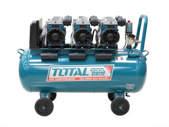 Тихий безмасляный воздушный компрессор 100л TOTALTCS3361008 Напряжение: 220-240 В ~ 50 Гц. Мощность: 3×1200 Вт. Вместимость: 100 л (26,4 галлона). Тип: Без масла. Уровень шума: 75 дБ. Тип двигателя: Медный. Скорость: 2850 об/мин. Рабочее давление: макс. 8 бар. Гарантия: 2 года.