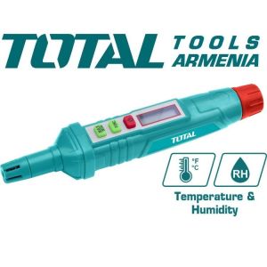 Цифровой измеритель влажности и температуры 2 TOTAL TETHT23 Температура окружающей среды - (-20 ℃ ~ 60 ℃) (-4 ℉ ~ 140 ℉). Влажность окружающей среды - 0 ~ 100%. Температура термобаллона - (-20 ℃ ~ 60 ℃) (-4 ℉ ~ 140 ℉). Температура точки росы - (-50 ℃ ~ 60 ℃) (-58 ℉ ~ 140 ℉). С функцией подсветки. С нижней функцией индикации заряда батареи. Упаковано в цветную коробку. Бесконтактный измеритель влажности и температуры для профессионального и домашнего использования. Помимо основных функций измерения температуры и влажности, он позволяет определять температуру росы и влажного шара. Дисплей устройства имеет подсветку, что облегчает чтение данных в плохо освещенных местах. После 30 минут бездействия происходит автоматическое отключение для экономии заряда аккумулятора.
