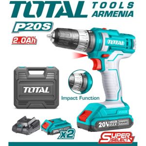 Ударная аккумуляторная дрель 20В TOTAL TIDLI20145 Тип аккумуляторная дрель Аккумулятор: литий-ионный, 20 В / 2 Ач. Максимальная скорость вращения: 0-400 / 0-1500 об / мин. Максимальная частота ударов: 0-22500 уд / минуту. Максимальная сила вращения: 45 нм. Размер патрона: 0.8 - 10 мм. Регулятор крутящего момента: 18 + 1 + 1. Сверление: 10мм - сталь, 20мм - дерево, 8мм - бетон. Устройство оснащено светодиодной подсветкой для освещения рабочей зоны. Упаковано в футляр.