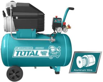 Воздушный компрессор 1.8kW TOTAL TC125506 Тип - воздушный компрессор. Тип компрессора - поршневой коаксиальный. Напряжение - 220-240В. Частота - 50 Гц. Входная мощность - 1,8 кВт. Число оборотов - 2850 об / мин. Количество цилиндров компрессора - 1. Количество ступеней сжатия - 1. Объем бака - 50 л (13.2 галлона). Рабочее давление - макс. 8 бар (116 фунтов на кв. Дюйм). Производительность на входе - 220 л / мин Шум - 96 дБ. С ресивером; Легко перемещать; Удобный слив конденсата; Длительный срок службы. Транспортировочные колеса - да. Манометр - есть. Насос со смазкой - маслом. Упаковано в картонную коробку. Запасные части։ Միացնող Ձող (Շատուն) TC125506-SP-7 Шатун TC125506-SP-7 Манометр 2 TC125506-SP-61 Манометр 1 TC125506-SP-57 Реле Давления TC125506-SP-56 Комплект Контроллера TC125506-SP-60 Предохранительный Клапан TC125506-SP-55 Коаксиальный воздушно-масляный компрессор TOTAL TC125506 обладает высокой производительностью за счет прямого привода. Масляная ванна обеспечивает лучшую производительность при меньшем потреблении энергии. Прочный корпус подходит для любых условий использования. Наличие колес и ручки для транспортировки обеспечивает мобильность, подходящую для больших строительных площадок или промышленных корпусов. Встроенный манометр позволяет легко контролировать степень сжатия воздуха и снижает вероятность поломки подключенного инструмента.