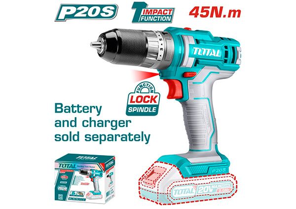 Аккумуляторная дрель ударная 20В/45 Нм (TIDLI201455)