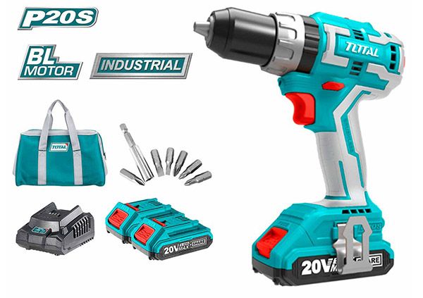 Аккумуляторная ударная дрель-шуруповерт / 20 В / 2А / 60Нм / + 2 Батареии (TIDLI20608)