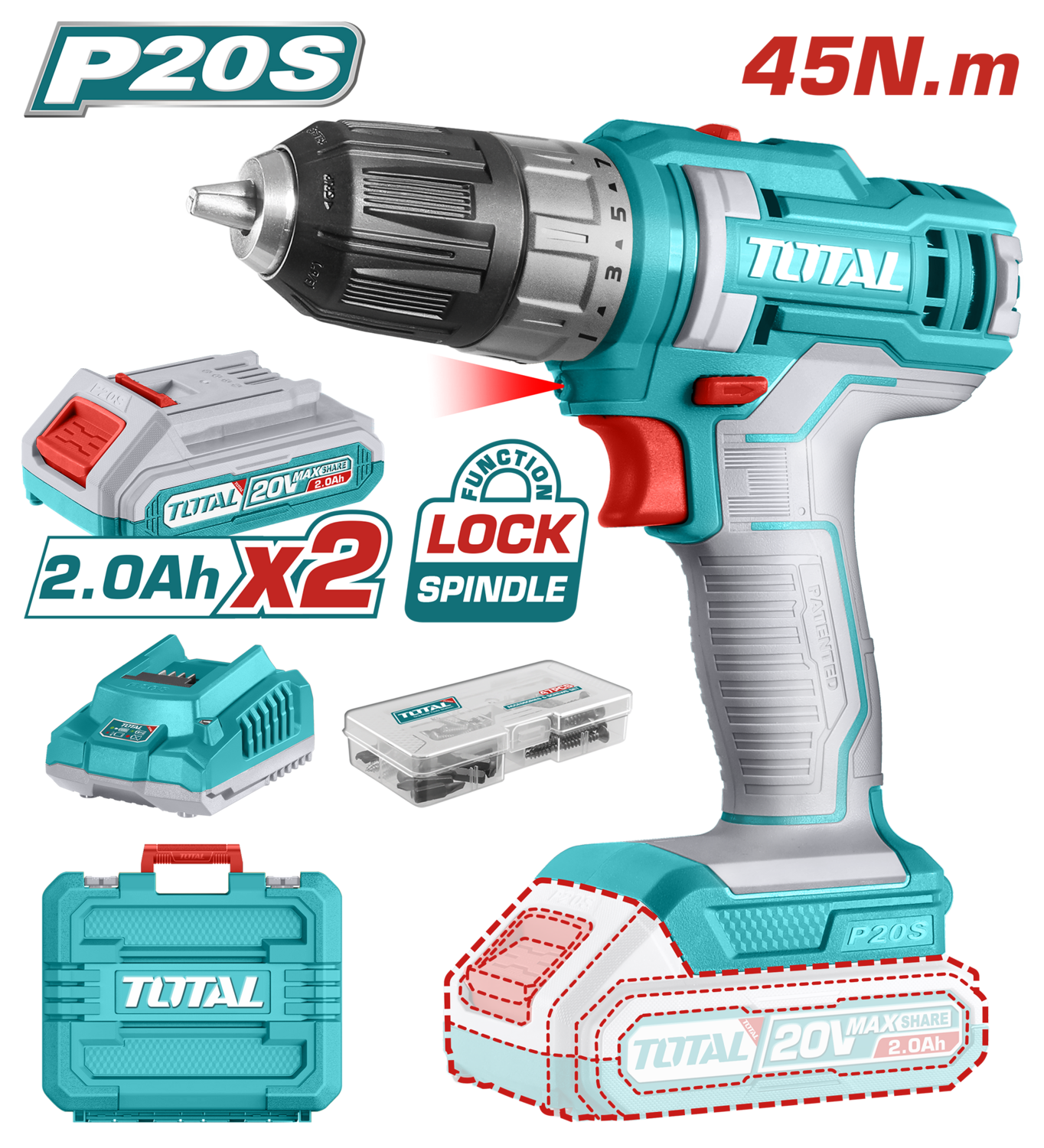 Аккумуляторная ударная отвертка 20В/2А TOTAL TDLI200528 Напряжение: 20 В Скорость: 0-400 / 0-1500 об / мин Сила вращения: 45 нм Размер патрона: 0,8-10 мм Регулятор момента вращения: 15 + 1 Механически регулируемые 2 скорости Функция осевого торможения Питание: 220-240 В ~ 50/60 Гц Встроенный рабочий свет Светодиодный индикатор емкости аккумулятора Коллекция включает в себя: 2 батарейки 2,0 А * ч( TFBLI20011 ) 1 шт зарядное устройство ( TFCLI2001 ) 47 дополнительных предметов