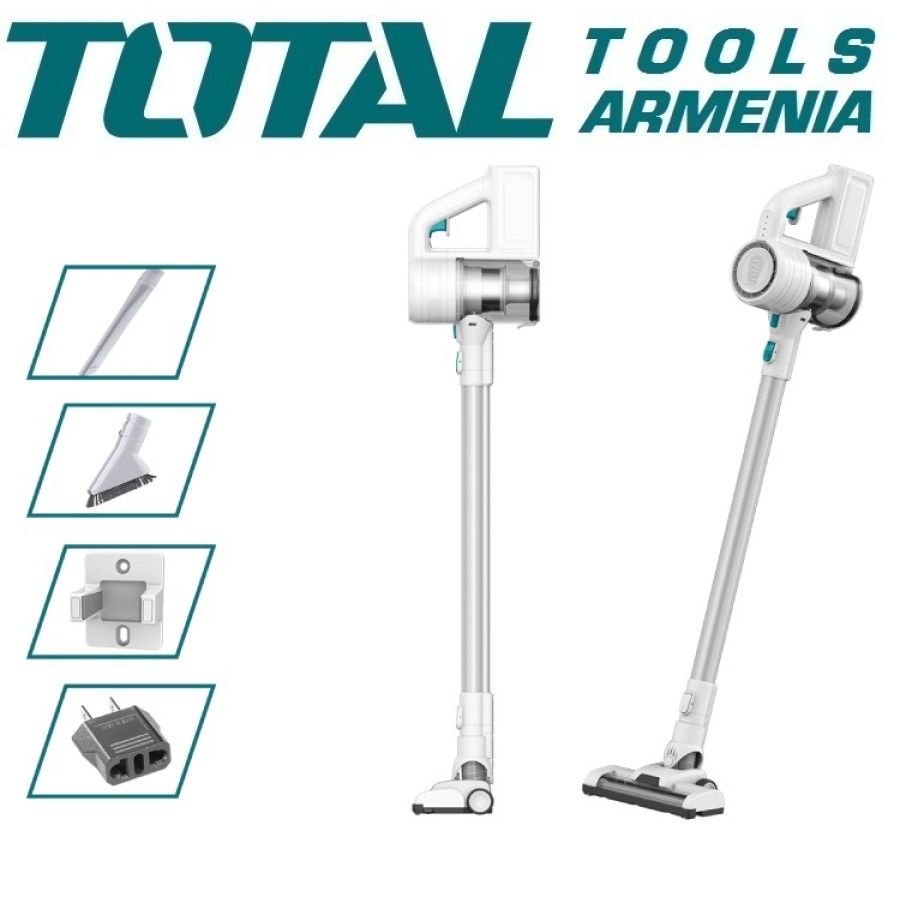 Аккумуляторный пылесос Li-ion 22.2V TOTALTVCH14111 Напряжение заряда - 240 В - 50/60 Гц. Напряжение - LI-ion 22,2В. Время зарядки - 4 - 5ч. Мощность - 140Вт. Емкость - 0,8л. Давление вакуума (кПа) - 10 кПа. Вес - 1,2 кг. Время работы - 35мин на малой скорости. Время работы - 20 минут на высокой скорости. Размер изделия - 230х220х1090мм. Упаковано в картонную коробку.