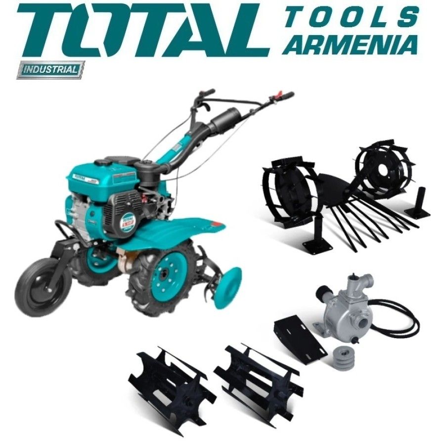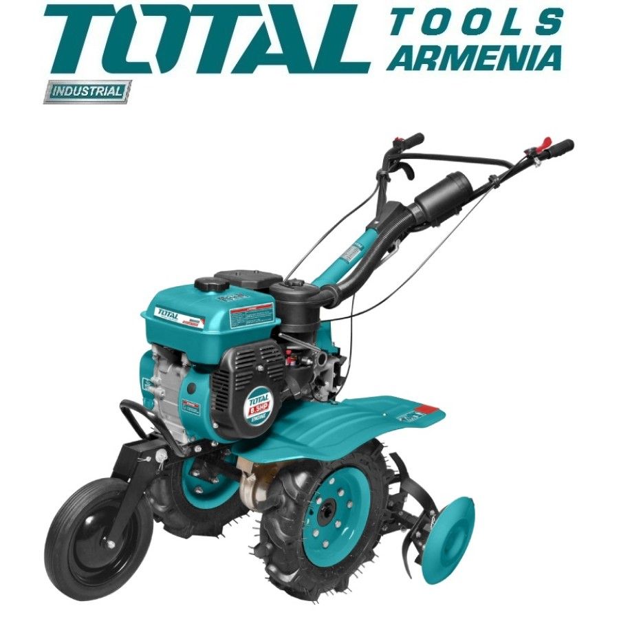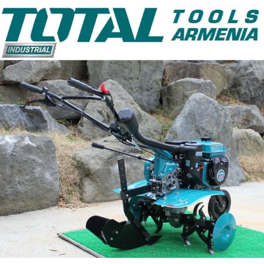 Бензиновый культиватор 4,8 кВт TOTAL TGC5001 Бензиновый культиватор - отличный вариант для тяжелых работ на больших садовых участках. Двигатель мощностью 6,5 л.с. обеспечивает высокую производительность. Агрегат имеет реверс, поэтому нет необходимости выполнять поворот вручную в случае препятствий. Эргономичные ручки для фиксации обеспечивают дополнительный комфорт. Переднее колесо имеет два положения: рабочее и транспортное. Модель подходит для обработки целинных земель. Установка дополнительного оборудования увеличивает функциональность агрегата. Мощность: 4,8 кВт. Тип двигателя: 4-х тактный. Объем двигателя: 196 куб. Максимальный крутящий момент 11/2500 Нм / об. / Мин. Емкость трансмиссионного масла: 0.95л. Объем обработки: 900 мм. Глубина обработки: 150-300 мм. Переключение передач: -1,0,1,2 - 1 режим сзади, нейтраль и 2 режима вперед. Тип двигателя: Ременной двигатель. Упакован в деревянный ящик. Вес 74кг.