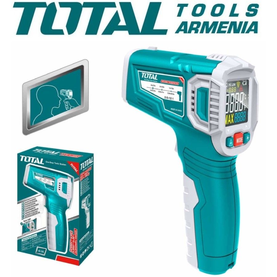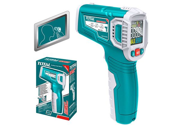 Инфракрасный термометр индустриальный и человеческий режим TOTAL THIT010381 Температурный режим для человека 32 ° C ~ 42,9, промышленный режим -30 ° C ~ + 550 ° C (-22 ° F ~ + 1022 ° F) Тип лазера 630 нм ~ 650 нм, <1 мВт, 12 точек Вес 100 г Время отклика составляет всего около 1 секунды при соотношении расстояния к точке (D: S) 12: 1. Время отклика <1 сек. Автоматическое выключение Аварийный сигнал верхнего / нижнего предела температуры (КРАСНЫЙ)
