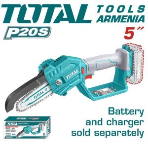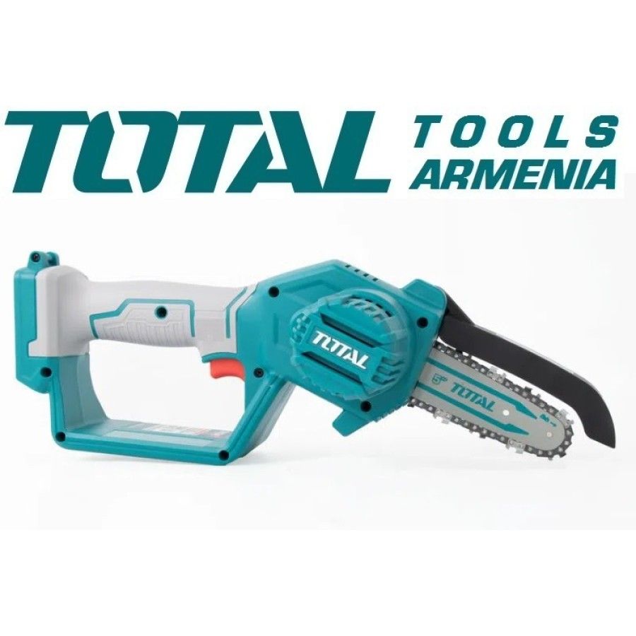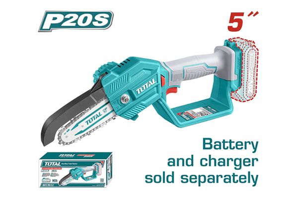 Литий-ионная мини-пила 20 В TOTAL TGSLI2058 Напряжение батареи: 20 В Напряжение зарядки: 220-240В/50-60Гц. Длина стержня: 13см. Скорость цепи: 5 м/с. В наборе: 1 шт. 5" пильная цепь 1 шт. 5" линейка для цепи 1 шт. ключ 1 шт. бутылка для масла Аккумулятор и зарядное устройство продаются отдельно Упаковано в цветную коробку. Аккумуляторная электрическая пила TOTALTGSLI2058 . Цепная пила Total предназначена для быстрого распила свежей, сухой и влажной древесины различной толщины и конфигурации, ДСП, древесины из мелких и средних бревен.