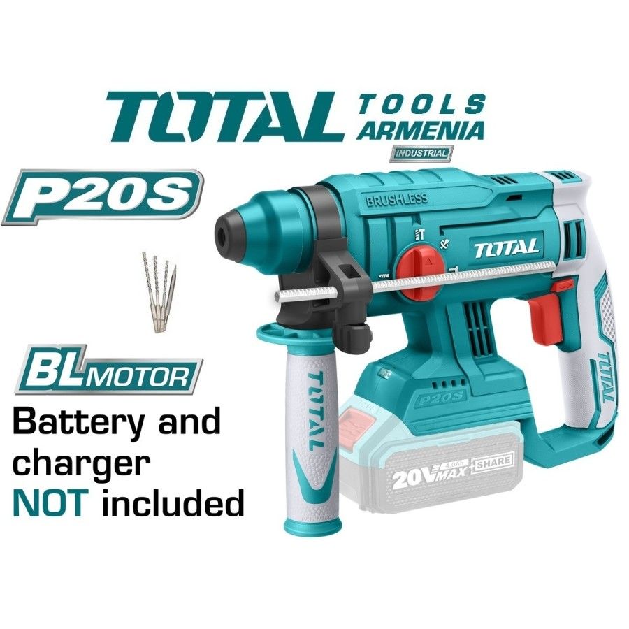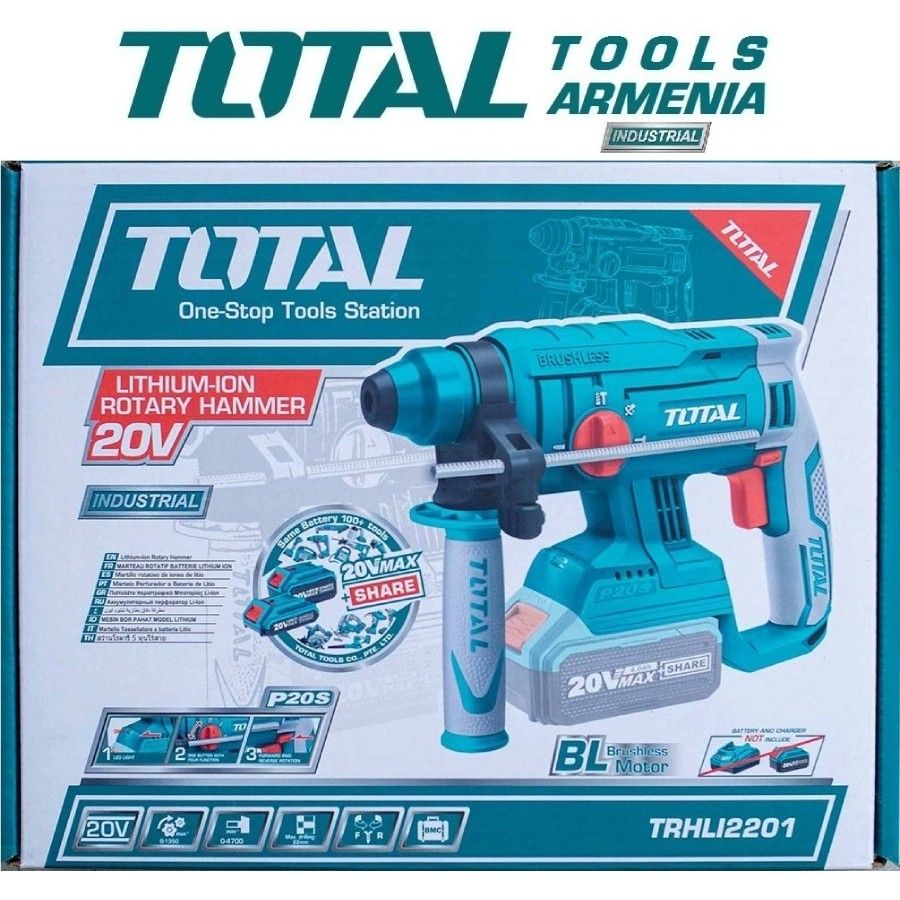 Литий-ионный ПерфораторTotalTRHLI2201 / 20 В / 2А - 4А / 1,7Дж /Бесщеточный Двигатель / ПРОМЫШЛЕННАЯ/INDUSTRIAL - Бетонный сверлильный станок с батарейным питаниемTotal TRHLI2201 20 В является продуктом Total, ведущего бренда с точки зрения долговечности и высокого качества. Машина использует напряжение 20 В с высокой мощностью, поддерживая максимальную работу. Кроме того, имеется встроенная светодиодная система освещения для поддержки работы в условиях низкой освещенности. Это машина с батарейным питанием, которая позволяет удобно работать во многих местах без необходимости в электричестве. -Интеллектуальная конструкция машины улучшена за счет бесщеточного двигателя, обеспечивающего простое управление и бесшумную работу. Корпус прочный, прочный, хорошо устойчив к ударам, сохраняя срок службы машины. Кроме того, ручка имеет эргономичный дизайн, гладкая, нескользящая, с высоким коэффициентом трения, что помогает закрепить машину более надежно. Машина окружена высококачественным пластиком для защиты компонентов внутри машины. - Вам больше не придется беспокоиться о том, когда у вас заканчивается заряд батареи, что больше влияет на работу, потому что вы можете купить столько батарей, сколько захотите (1 литий-ионная батарея20 В ). - Достаточно просто зарядить аккумулятор после того, как с каждой работой все в порядке (работать далеко, взять с собой 2-3 единицы), продукт находится в удобной коробке для хранения и для переноски при необходимости зарядного устройства Для этого устройства есть компактный дизайн, но для быстрой скорости зарядки! Запасные части։ Малая Шестерня TRHLI2201-SP-54 Большая Шестерня TRHLI2201-SP-18 Статор TRHLI2201-SP-65 Ротор TRHLI2201-SP-64 Комплект Контроллера TRHLI2201-SP-78/79/81 ЭТА МОДЕЛЬ НЕ ВКЛЮЧАЕТ БАТАРЕЮ И ЗАРЯДНОЕ УСТРОЙСТВО. Бесщеточный Двигатель. Напряжение аккумулятора: 20 В / 2,0 Ач /4,0 Ач . Скорость холостого хода: 0 - 1350 об / мин. Уровень воздействия: 0 - 4700 ударов в минуту. Максимальная мощность сверления бетона: диаметр 22 мм,Прилагаемые аксессуары: в комплекте 3 сверла и 1 долота . THT26131 Сумка для инструментов 13 дюймов x 1 шт. Защитные очки (случайный цвет). Интегрированный рабочий свет. Система патронов SDS Plus . 2-х функциональный металл, дерево, бетон. Макс сверло по бетону 22 мм. МАКС Дрель Металл 15 мм. МАКС Дрель Вуд 30 мм.