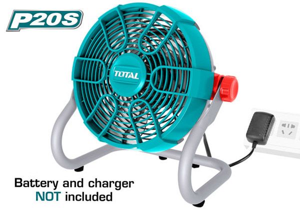 Литий-ионный вентилятор 20V TOTAL TFALI2002 Тип вентилятор Напряжение: 230 В / 50 Гц Скорость вращения: 1700/2600 об / мин. Объем воздуха: 310/450 куб. Футов / мин. Регулировка наклона: 0 - 360 градусов. Размер: размер вентилятора - 280мм, размер лопасти 230мм. Батарея: не входит в комплект Зарядное устройство: адаптер переменного тока. Вес: 2,4 кг. Совместимость с аккумулятороми: 2,0 Ач и 4,0 Ач .