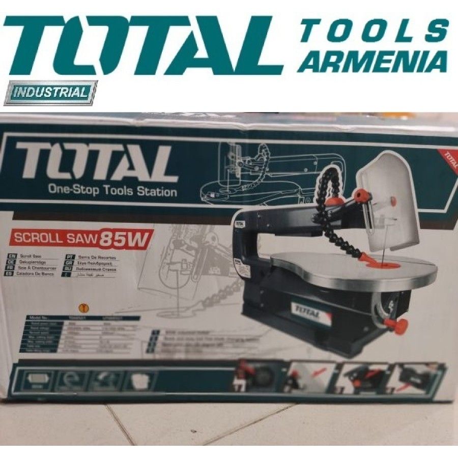 Стационарный лобзик 85Вт Total TS88501 Стационарный лобзик Total TS88501 – настольный лобзик, удобный бытовой инструмент для частного использования и выполнения косых и продольных пропилов в различных материалах. Эта мощная пила позволяет домашним пользователям работать не только удобно, но и безопасно. Запасные части: Пильное Полотно TS88501-SP-30 Мощность: 85 Вт. Напряжение: 220 - 240 В / 50 - 60 Гц. Частота вращения: 1450 об / мин. Глубина реза: 50 мм. Ширина реза: 410 мм. Размер стола: 375X250 мм. Размер лезвия: 133x2,6x0,25 мм (18TPI). Диапазон наклона стола: 0 - 45 °. Вес: 11 кг. Гарантия: 1 год.