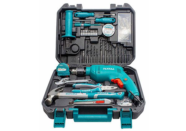 Набор бытовых инструментов (680 Вт) 115 шт. TOTAL THKTHP1152 Ударная дрель 680 Вт (220-240 В ~ 50/60 Гц, патрон 13 мм) - 1 шт. 1 шт 8 унций. Молоток с когтями Отвертка SL5,5 x 100 - 1 шт. Отвертка PH1 x 100 - 1 шт. Клещи комбинированные 7 ″ 1 шт. Разводной ключ 6 ″ 1 шт. 1 шт. Стальная измерительная лента, 3 м 1 шт. Нож с отламывающимся лезвием 5 шт. Спиральных сверл (2, 3, 4, 5, 6 мм) 5 сверл по камню (4, 5, 6, 8, 10 мм) 4 шт. Сверла по дереву (4, 5, 6, 8 мм) 1 шт. Тестовый карандаш 1 шт. Изоляционная лента из ПВХ 10 бит отверток (PH0, PH1, PH2, PH3, PZ0, PZ1, SL3, SL4, SL5, SL6) 1 шт. Магнитный держатель для бит 40 шт. Винты (20 шт. X ST3,5, 10 шт. X ST4, 10 шт. X ST5) 40 пластиковых заглушек (20 x 5 мм, 10 x 6 мм, 10 x 8 мм) Набор Total Tool Box 115 Pieces состоит из ударной дрели мощностью 680 Вт с 14 сверлами различных размеров и типов, в него входят несколько отверток разных размеров, рулетка, молоток и множество других удобных инструментов. Этот набор инструментов идеально подходит для использования в профессиональной среде или дома. В этот набор инструментов также входит удобный ящик с адаптером для розетки. В этом наборе есть мощная ударная дрель, молоток, различные типы отверток и различные инструменты, которые могут облегчить ваш рабочий день. Этот набор инструментов - все, что вам понадобится, когда вы работаете дома над различными задачами.