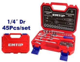 Набор головок 1/4" с трещоткой 45шт Emtop ESKT14451