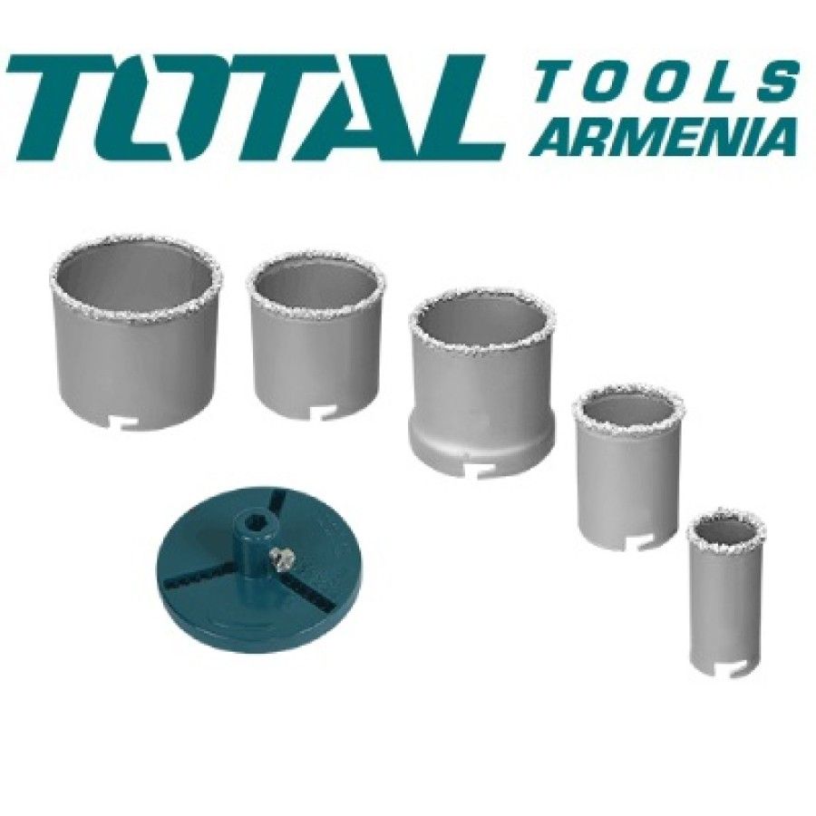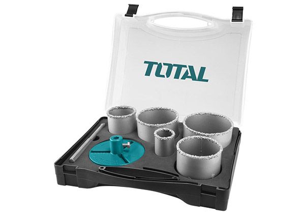 Набор коронок для плитки 7шт TOTAL TACSH2071 Минимальный диаметр - 33 мм. Максимальный диаметр - 83 мм. Центровочное сверло в комплекте - есть. Количество в наборе - 7шт. Держатель в комплекте - есть. Высота - 50 мм. Размеры в наборе - 33мм, 53мм, 67мм, 73мм, 83мм. Фиксирующая пластина алюминиевая - 1шт. Пилотное сверло - 1шт. Материал - углеродистая сталь. Набор коронок предназначен для безударного сверления больших отверстий в плитке и плитке. Биты изготовлены из высококачественной углеродистой стали с покрытием из карбида вольфрама, что обеспечивает сверление без трещин и сколов.