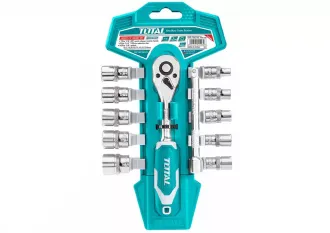 Набор торцевых головок, 1/2, головки 10 - 24 мм, с трещоточным ключом TOTAL THT141121 Размер мин. 10мм Размер макс. 24мм Количество в наборе 10шт. Размеры головок 10,11,12,13,14,15,17,19,21,24мм; Размер посадки головки 1/2 дюйма Удлинитель 125 мм - 1 шт. Набор TOTAL THT141121 — комплект приспособлений для монтажных, демонтажных, ремонтных работ с резьбовыми соединениями. Посадочный размер - 1/2". Рукоятка с храповым механизмом оснащена специальной кнопкой, благодаря которой смена головок происходит быстрее. Рабочие части выполнены из хромванадиевой стали с хромированным покрытием, обеспечивающей инструменту прочность и высокий ресурс работы. Рукоятка отличается удобством захвата и отсутствием проскальзывания. Пластиковый подвес позволяет аккуратно хранить инструмент.