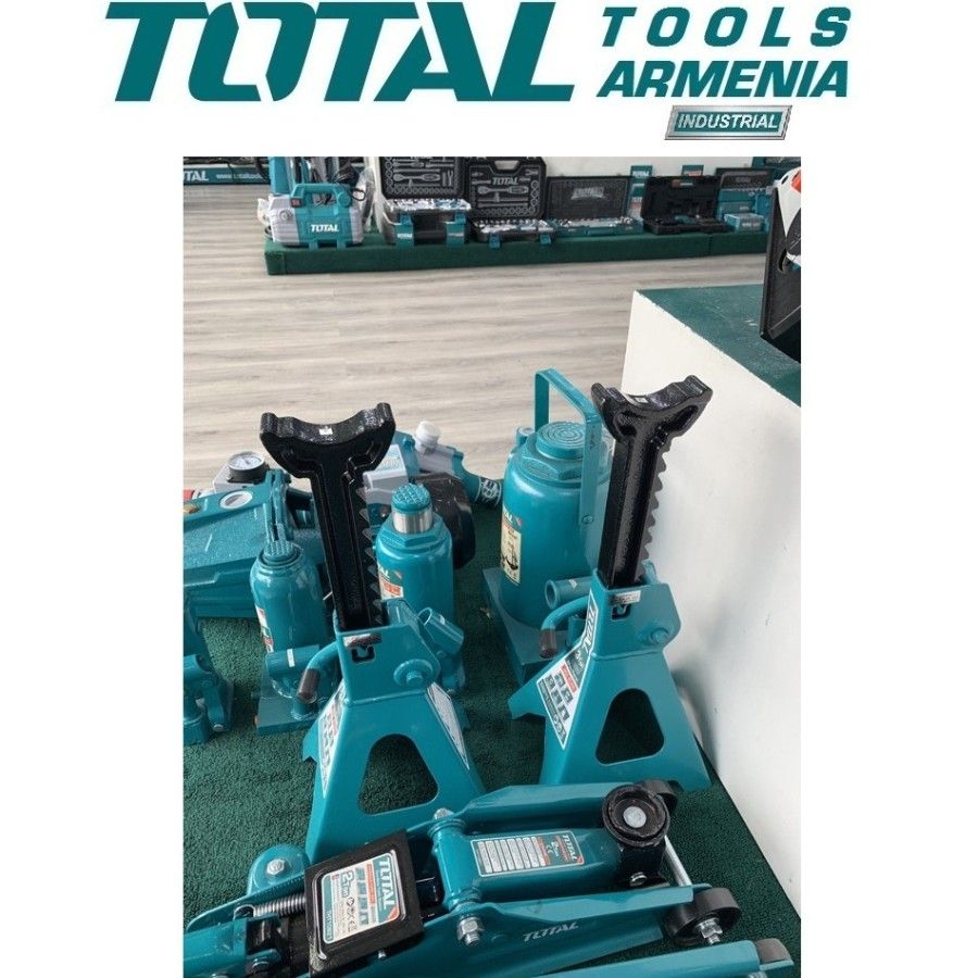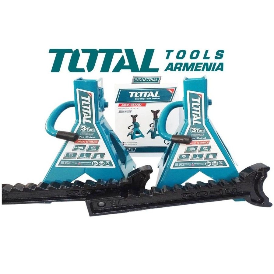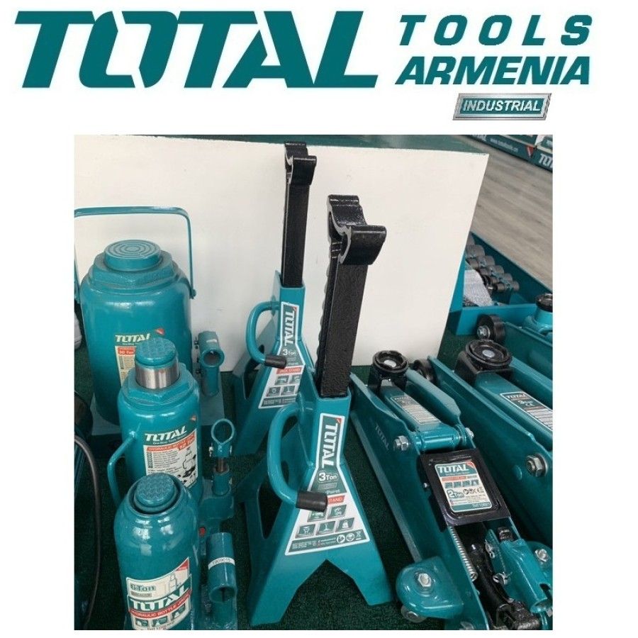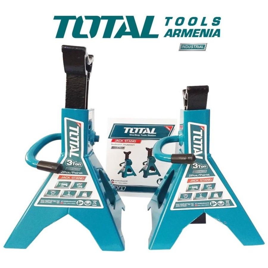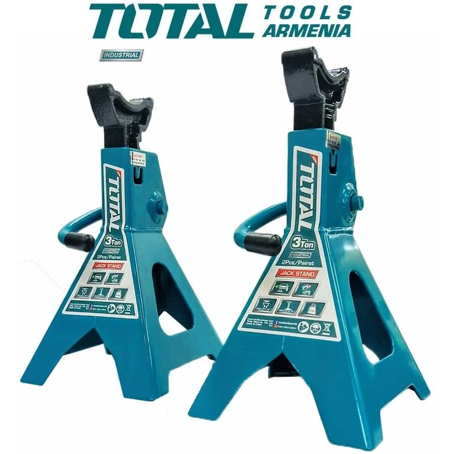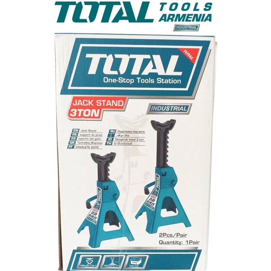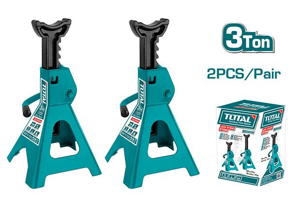 Подставка для автомобиля 3 т TOTAL THJS0301 Грузоподъемность 3 т. 2 штуки / пара. Мин. высота: 270 мм. Макс. высота: 410 мм. Ход : 140 мм. Вес 6 кг. Подставка для автомобиля TOTAL THJS0301 предназначен для использования в автосервисах, на станциях ТО, в автопарках различных предприятий.Трещотка обеспечивает точную регулировку и быстрое снятие. Твердая стальная ручка, самоблокирующаяся трещотка. Большое седло, единая конструкция рамы. Стойка из ковкого чугуна. Вместимость: 3 тонны. Упаковка: цветная коробка.
