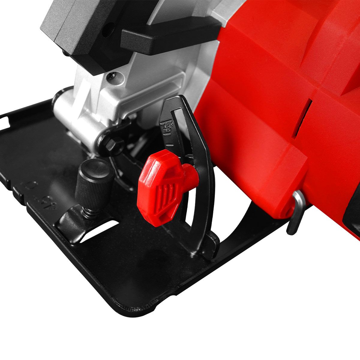 - Пила имеет возможность резки под углом 90 и 45 градусов и имеет нижнюю пластину для постепенной резки