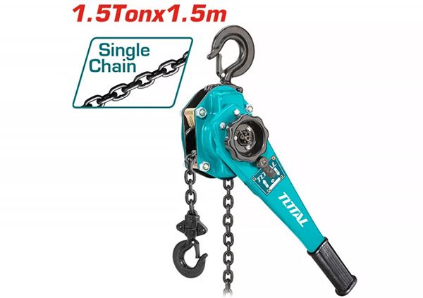 Рычажный блок 1,5 м 1,5 т TOTAL THSLB1501 Высота подъема - 1.5 м. Номинальная грузоподъемность подъемника - 1.5т. Пряди грузовой цепи: 1. Расстояние от крючка до крюка - 350 мм. Тяга Цепи Для Подъема Полной Нагрузки: 236 Н. Вес - 10.1 кг. Упакован в деревянный ящик. Рычажный блок предназначен для натяжения тросов и проводов при монтаже и ремонте контактной сети, а также при перемещении грузов и других работах.