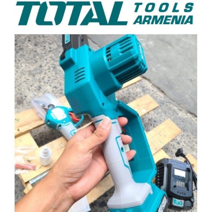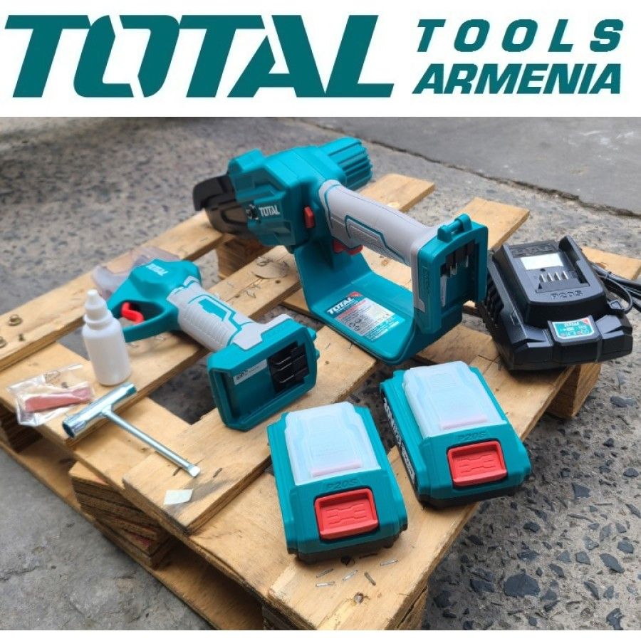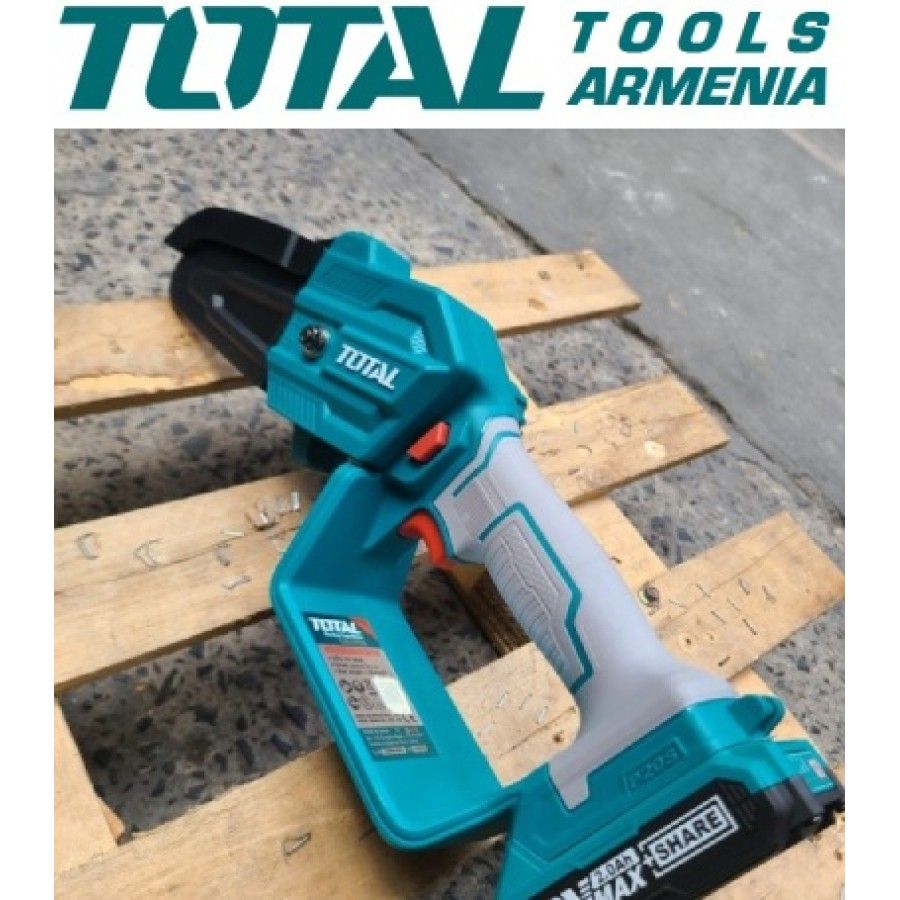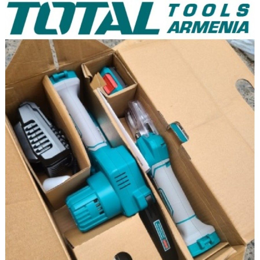 Секатор и мини-пила 20 В набор TOTAL TOSLI23012 Ножницы для обрезки: TSSLI20308 Бесщеточный двигатель. Напряжение: 20В. Диаметр резки: 20 - 30 мм․ Мини-пила: TGSLI2058 Длина: 13 см. Скорость цепи: 5 м/с. В комплект входят: аккумуляторы 2x 2.0Ah, 1x зарядное устройство, 1x пильная цепь, 1x бутылка для смешивания, 1x точильный камень, 1x линейка для пил. Упакован в красочную коробку.