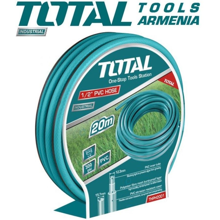 Шланг ПВХ 20м TOTAL THPH2001 Тип - шланг. Диаметр - 1/2 дюйма. Длина - 20м. Величина разрыва - 300psi. Значение испытания на растяжение - 880Н. Упаковано бумажной вешалкой.
