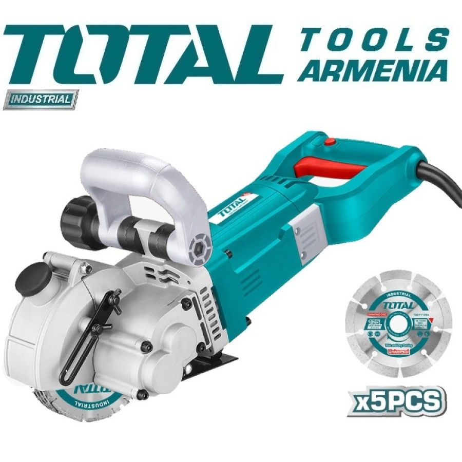 Резак для Бетона 3000 Вт / 130 мм Total TWLC1301 Бетонорезка TWLC1301 Total использует режущие диски диаметром 130 мм и имеет мощность до 3000 Вт, что обеспечивает высокую эффективность работы.Эта машина широко используется в строительной отрасли. Сильный мотор, внешняя сторона представляет собой прочную защитную оболочку, способную к изоляции, которая помогает нам чувствовать себя более защищенными при использовании. Штроборез эргономичная конструкция рукоятки обеспечивает комфортные условия работы. Удобно расположенный передний кожух эффективно предотвращает разброс отходов резки при любой глубине паза . Чистота рабочей зоны, компактность и удобство использования. Простой в использовании и долговечный. Напряжение: 220В-240В ~ 50 / 60Гц Входная мощность: 3000 Вт Скорость без нагрузки: 7000 об/ мин Диаметр диска: 130мм Резьба шпинделя: M20 Алюминиевый кожух для безопасной работы Жесткая и стабильная базовая поддержка Регулируемая глубина резания для различных работ Блокируемая кнопка включения Удобная прорезиненная рукоятка Защита инструмента от перегрузки Блокировка шпинделя Внешние щеткодержатели Пылеудаление Чистота рабочей зоны , компактность и удобство использования Штроборез от предлагает наиболее эффективную вырезку пазов с чистой кромкой Эргономичная конструкция рукоятки обеспечивает комфортные условия работы Удобно расположенный передний кожух эффективно предотвращает разброс отходов резки при любой глубине паза АКСЕССУАРЫ:1 наконечник с прорезями, вспомогательную ручку, 1 набор из углерода и 4 режущих диска.