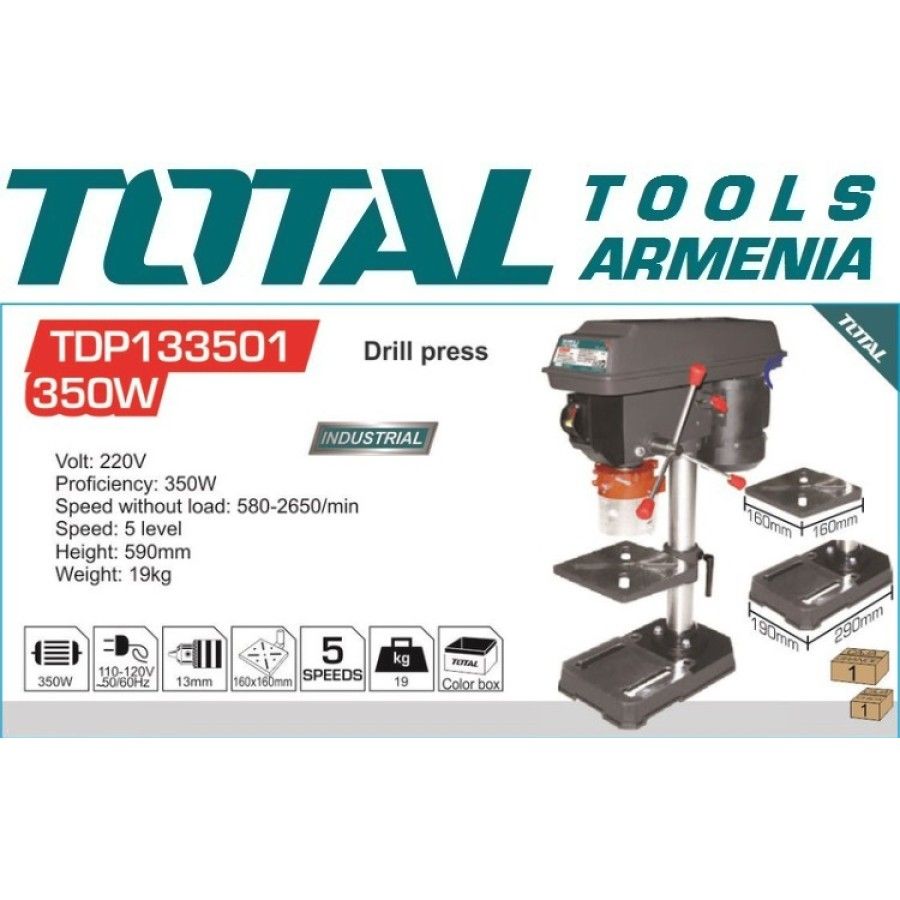 Сверлильный станок TOTAL TDP133501 350 Вт Стойка размером 291x183 мм, может твердо стоять на поверхности, не скользит при работе машины. Сверло имеет аккуратную, не громоздкую форму для удобного хранения и хранения. Изготовленный из высококачественных материалов, сверлильный стол Total TDP133501 рассчитан на длительное и длительное использование. Машина работает благодаря ручному управлению, проста в управлении для производства продуктов, требующих высокой точности. Запасные части: Пружина TDP133501-SP-42 Треугольный Ремень TDP133501-SP-30 Напряжение: 220-240 В ~ 50 Гц Мощность: 350Вт. Скорость без нагрузки: 620-2620 / минута (50 Гц) / 740-3100 / минута (60 Гц) Максимальный диаметр сверления: 13 мм. Ход шпинделя: 50 мм. Диаметр колонки: 46 мм. Размер стола: 160x160 мм. Размер основания: 290X190 мм. Высота станка: 580 мм. Вес: 19 кг. Гарантия: 1 год