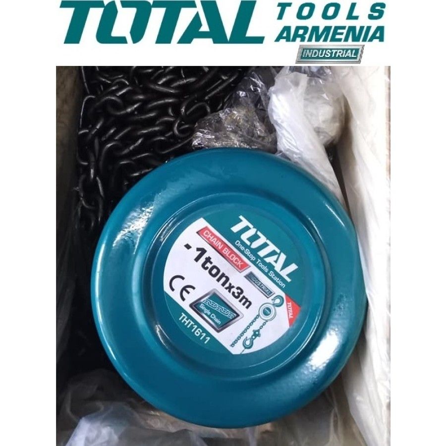 Тельфер механический 3м 1 т TOTAL THT1611 Высота подъема - 3 м. Номинальная грузоподъемность подъемника - 1т. Количество подъемных цепей: 1. Расстояние от крючка до крюка - 300 мм. Тяга Цепи Для Подъема Полной Нагрузки: 322.5 Н. Вес - 9,45 кг. Упакован в деревянный ящик. Тельфер механический TOTAL THT1611 - это оборудование стационарного типа, предназначенное для подъема грузов массой до 1 тонны. Таль применяется для монтажа или демонтажа, проведения грузовых и ремонтных работ. Изделие оснащено тормозом, предотвращающим самопроизвольное опускание груза. Подъемник снабжен крюковой колодкой и блоком с двумя цепными цепями.